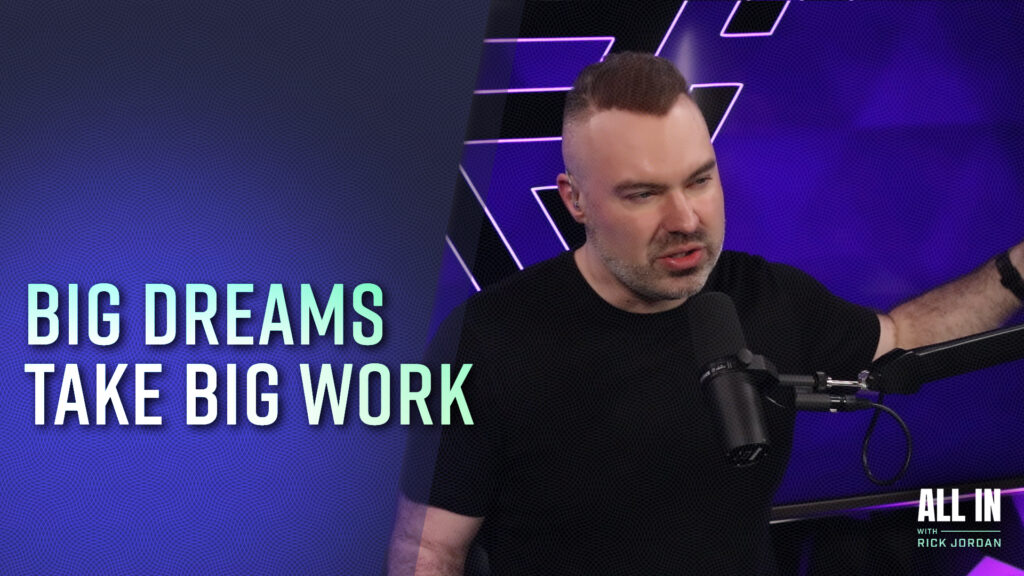 What’s shakin’, I’m Rick, Jordan, today, we’re going all in. You have big dreams. I have big dreams. I’ve said before that the dream only stops when the dreamer stops dreaming. Alright, so as you continue to go, there’s gonna be some things you’re gonna find out. And this is meant, to be encouraging today to let you know that you’re not alone in this because there are two things that people who have big dreams have in common. I start to think back to when I first started launching my personal brand, and the very first thing I did was actually speak in the NASDAQ boardroom and talk about go bigger go home. And my photo was on the NASDAQ Jumbotron. And when I was at this event, and I’ll be straight up with you, because I was at this event, right, it was an event for entrepreneurs. And it was actually a paid event, I paid to be there and paid to speak. And I’m in this event that thinks of like a mastermind, right, there’s a lot of masterminds that are like this, and I’ve been a part of other ones too, but you paid to be a part of this group. And then you also get to speak to and of course, business comes out of it out of it.