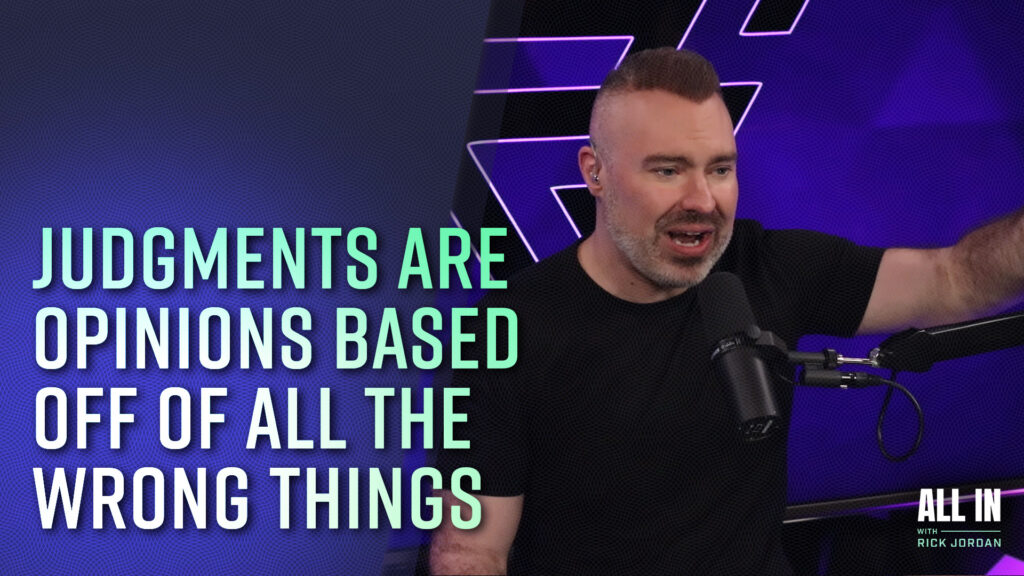 Hey, what’s shakin’!? Hey, I’m Rick Jordan. Today, we’re going all in. Opinions. Don’t you love when people just have freaking opinions? You’ve probably heard the phrase before like opinions are like assholes. Everybody’s got one, right? And that I was at an event with David Meltzer, he’s a good friend of mine, please go on follow him and share his content because he’s amazing. And he made the statement there that really, really resonated with me around opinions, but it actually crossed over into something else because of its judgments. And judgment is like a fancy word for opinion, that’s actually a heavier word for something like that. And I’m sure you’ve met people like this to where they’re judged, right to where they’re, like, everything that happens, everything that you do, there’s always something that they have to say about it, right? And it’s, it feels like, it’s always more than just an opinion, you know because everybody’s entitled to have their own opinions, right? And you are entitled, whether you want to care about those opinions or not, it depends on the person that depends on the situation, but it’s up to you. And this is where you kind of get your power back, it’s up to you.
