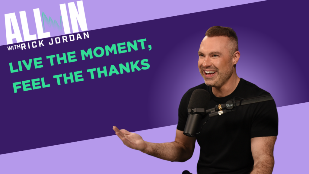 And of course, people talk about it looking back and saying, oh, what would are you grateful for this year? What’s going on in your life? That’s grateful, and that’s grateful, and that’s fine if you want to do that, but I’m asking you to just be simple. That’s it because it’s very easy. Christmas is even easier because, like I said, you go back into the 26th the next day, and it’s like, right back into the swing of things, right? Thanksgiving, you’ve got this extra time, and it’s very easy to just let this blow by and just have it be another day, you know, just like a couple of family members or friends or whatever, getting together for dinner, and that’s really it, and that’s all that you’re doing, but let this be a time today to where you’re just able to sit and worry about nothing, because everything is still going to be there. I mean, that’s the beauty of life, right? Is that everything is still going to be there? Nothing tragic really happens on Thanksgiving, unless you’re talking about deep Friar fires and all that, which happen every single year. Have you seen those videos? I’m going to chase a squirrel on this one, but they’re kind of crazy. You know, some of these individuals that obviously that’s not a good Thanksgiving, and they have some things to worry about, right? But why would you do that inside a garage? Come on. Come on. Now. So for those of you who aren’t deep frying a turkey inside of an enclosed structure, today is the day to just let go of everything that was the day before, not think about the stuff that’s going to be the day after or the week after, and just to sit around and look around and be like, I’m just gonna sit here and enjoy the moments because this is something today to where you could probably start to make this some kind of a practice for yourself. I know people talk about practicing gratitude and everything, but what if it’s even simpler than that? What if being thankful could just be in the moment? What if being in the moment is the thing that can allow you the pathway to gratitude? I hope you heard me on that man, what if just being in the moment and enjoying the moment is the thing that is the door to the way to gratitude? That’s what it was for me, you know. And who knows? Maybe you’re like, You’re nuts. Rick, I you know, I don’t care. Try it and see what happens. I think that’s powerful because it’s something that can be repeated every single day that you want it to happen. How often are you in a scenario where there are really good things going on around you? You might be on a date, or you might be hanging out with one of your kids who you love dearly. You might be hanging out with friends, but at the same time, there’s a bunch of other stuff that’s still just running through your mind. And I get it, there’s pressures of life, you know, there’s a lot going on.