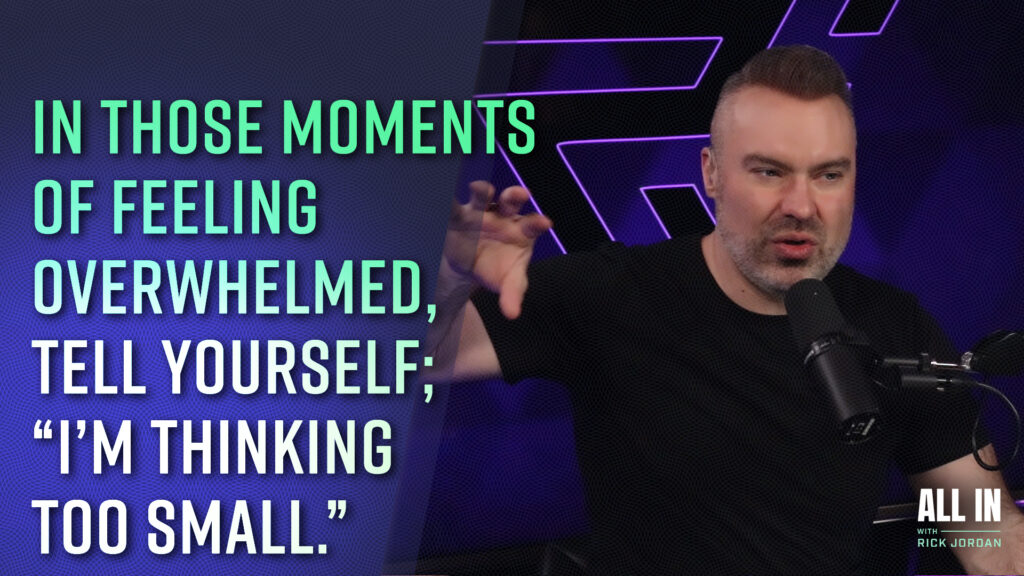 But if I think bigger, if I dream bigger, then I can easily solve that. Because if I’m looking to solve this one problem about one thing, but I get overwhelmed because I’m focusing on that and I tell myself, Rick, you’re thinking too small. But then I take a look, it’s like, well, if I had this one thing, what if I had a hundred of these to solve at one time? Then I start to solve this massive scenario that doesn’t even exist, but it could in the future. It doesn’t exist right now, but you start to make different decisions. You start to make bigger, more impactful, more powerful decisions that actually start to make that little problem that you’re overwhelmed about seem pretty tiny and inconsequential. That’s the beauty of this because self-made millionaires dream big. And then all of a sudden when you accomplish that, that can, that can solve for a hundred of whatever.