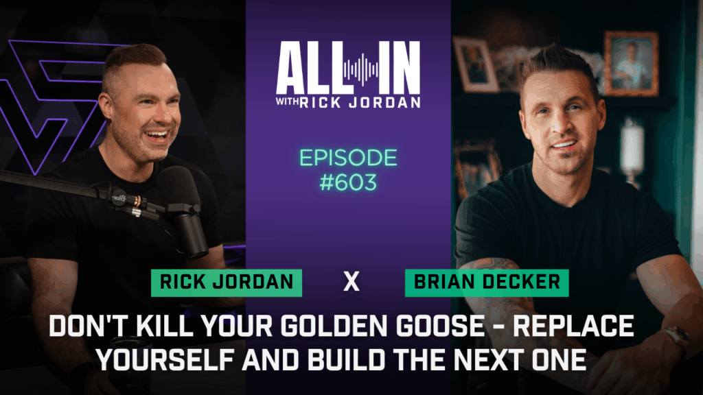 What’s shaking? Hey, I’m Rick Jordan, and today we’re going all in. All right, today, I’ve got this thing, and I’ve got, you know, my team does one-sheets in front of me all the time, and on this one sheet, it says that this dude is a serial entrepreneur. And I can’t tell you how many times that I see that on a sheet somewhere. You know that somebody labels themselves, or they had a branding team label them, a serial entrepreneur. But today, I think we got the real deal, you know, because taking a look at everything that this dude has done, it’s phenomenal, and just a lot of areas, kind of a dude after my own heart, when it looks like he’s always trying to find the next evolution of the market space and what’s going on. So I am such in a place that I’m pumped to have this dude on today. Brian Decker, what’s shaking, brother?