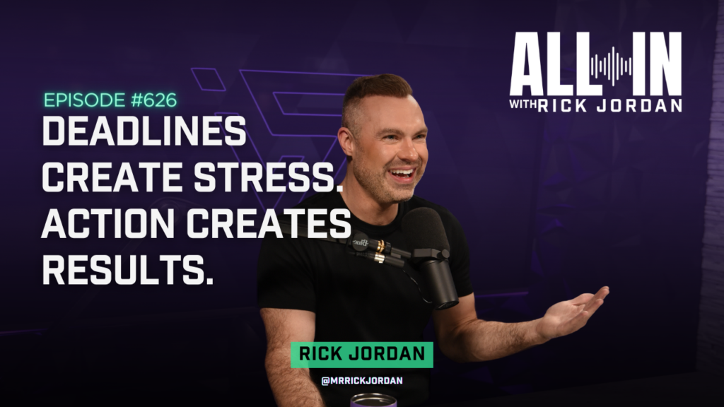 What shakin’? Hey, we’re back. I’m Rick Jordan, and today we’re going all in. We’re going to talk about achieving things by a certain time point in your life today. You know, everybody needs milestones. Everybody needs a time period to give yourself at the same time it’s there’s a negative side of this too, and I want to talk to you about that today. This was inspired off of an Instagram reel that a good friend of mine, David Meltzer, put out a little bit ago, and it just got me thinking, I’m actually sharing the stage with him and Michael Chandler, the MMA star, in just about a week and a half or so at an event. And I’m pumped to talk about this, you know, because I thought of a little more after this. Because what his point was is, like, you know, when you set things, it’s like, by the time I’m 30, I’m gonna be this, you know, by the time I’m I’m 25 I’m gonna be married. By the time I’m 30, I’m going to have a house by the time I’m 35 I’m going to make my first million by the time I’m 40, I’m going to have a rental property, you know, or something in that or it’s like, by the time I, you know, one year from now, I’m going to be in a new and better relationship, or five years from now, I’m going to have kids, you know, whatever these life goals are, or, you know, what I’m going to be at this point in my career, 18 months from now? That’s my target, right there.
