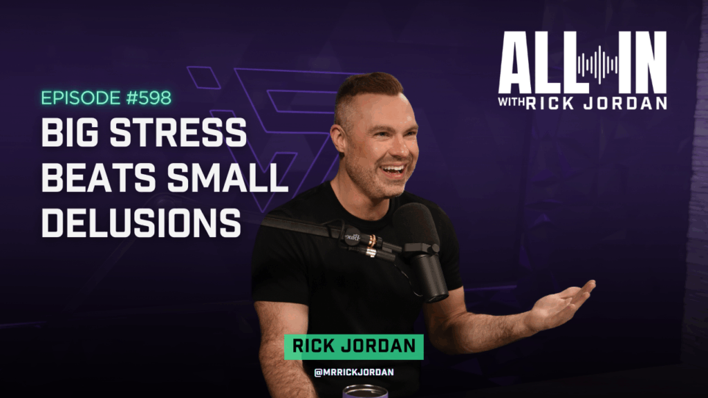 What’s shakin’? Hey, I’m Rick Jordan, and today we’re going all in. I was scrolling through Instagram the other day, as many of us do, right? I actually don’t spend too much time on there, which is great, you know, I write stuff. I look on my DMs, but there’s not a lot of time that I spend to flip through things. And I caught something from Jordan Peterson. And if you’ve never followed the guy, I looked at the guy, I mean, he’s, he’s actually a psychologist, and his thought process is super intriguing to me. But there was one thing that he was talking about with stress. And I’m under a lot of stress, you know? And I’m like, Oh, cool. I’m gonna watch this. He’s talking about stress. And I started to think about this as he said this, this thing, which is, I mean, you could say it’s a quote, but it was his words. And he’s like, if you’re not having to think about something big and stressful, then all you’ll think about is something small and delusional. I was like, Whoa, man, that’s deep, yeah, because I’m thinking about this, like, the things that I’m thinking about right now are like, you know, company building and public company, and my next speaking gig, and where I’m traveling next to and my kids, because, you know, a year and a half they’re 18, and all these other things that I would consider to be big. And that’s the point, is that they’re absolutely real.