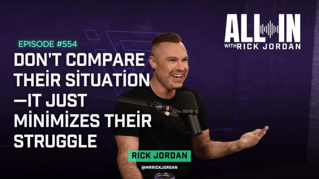 What’s shakin? Hey! I’m Rick Jordan, and today we’re going all in.Everybody’s had people come to them with issues they’ve been struggling with in life. And today I’m going to give you some ways to support them, because sometimes it seems like you really want to jump in there and help and you really want to just help them fix something. And a lot of times they’re like, standoffish, right? And I see individuals have these interactions, or I’ve had these interactions, like, you know, I just want, I just want to, like, throw something out of you real quick, because maybe I need to vent. And I did a whole episode on venting before and how to make sure that that person is there to hold the space for you, and how, if you’re venting multiple times, it’s really like leaning into victimhood a lot more, rather than venting once and then taking action on it. But it helps when you have somebody good to vent too, and there’s ways to support people, because I think this is true for most people, right? I believe that 99% of people actually really are good and want to do good for other people. So how do you support somebody the best when something’s going on? A lot of these methods I use, and they’re actually really cool, because it shows them that you’re there to help them at the time when they need help in the way that you want them to so I’m gonna give you these that way the next time somebody comes to vent you, by the way, there’s benefit for you in this too, because it preserves your own energy.