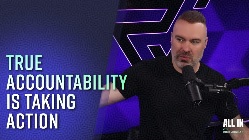 Hey, what’s shakin’, hey, I’m Rick Jordan. Today, we’re going all in. Have you ever heard somebody say, oh, you know what, I take full accountability, or That’s on me? You know, it’s my fault. Right? And they seem sincere at the moment. They absolutely seemed sincere in the moments, but then it’s like, the question is, where does it go from there? I’ve always thought about this. It’s like, because you know if somebody is really taking full accountability, we’ve got like, this accountability Canvas in the office, it’s like, do it, own it, solve it, right. And those three things alone, they’re not words that you say, right? They’re actually actions, because true accountability is about taking action, though you can you can say I take full accountability all you want. And when someone tells you this, always follow that up with a question like, cool. So what are you going to do now? It’ll stun them, I promise you, it will stun them when they say, oh, that’s on me. I take full accountability. Okay, so what does that mean? You know, that’s another good question. What does that mean? Oh, well, it’s my fault. I’m not worried about what fault it is, or whose fault it is, or placing blame. That’s great that you’re taking accountability.