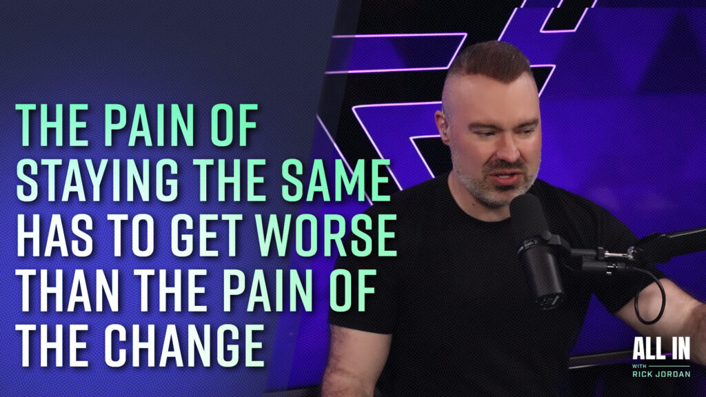 Hey, what’s shakin’? Hey, I’m Rick Jordan. Today, we’re going all in. You say you want to change, or maybe someone else told you, it’s like, I’ll change, I’ll change for you. And I’ve talked about how the chain doesn’t change and doesn’t last unless it’s really for themselves. I listened to that episode A little while back. But today, we’re going to talk about that threshold, where change actually happens. This is something that was recently brought back to my attention and is so true because I see this in multiple areas of my life, where I just don’t see change, whether it’s in myself or somebody else. And you start to think it’s like, why am I continuously doing this to me? Right? If it’s something like me, why do I continuously tolerate something going on around me? And I start to, I mean, really, the problem always comes back to you anyways, it really does, right, and most other people are like a reflection of you in those areas. But when you see this thing and like man, I want to change, or you’re like, geez, I just wish that they would change. And I’m going to start to use a different word for change at some point in time, because change can be actually kind of confrontational, change can be scary.